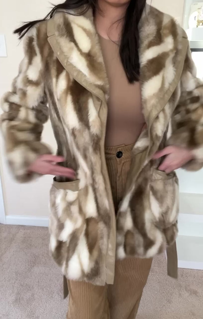 1960's Faux Fur Coat Luxurious Patchwork - S